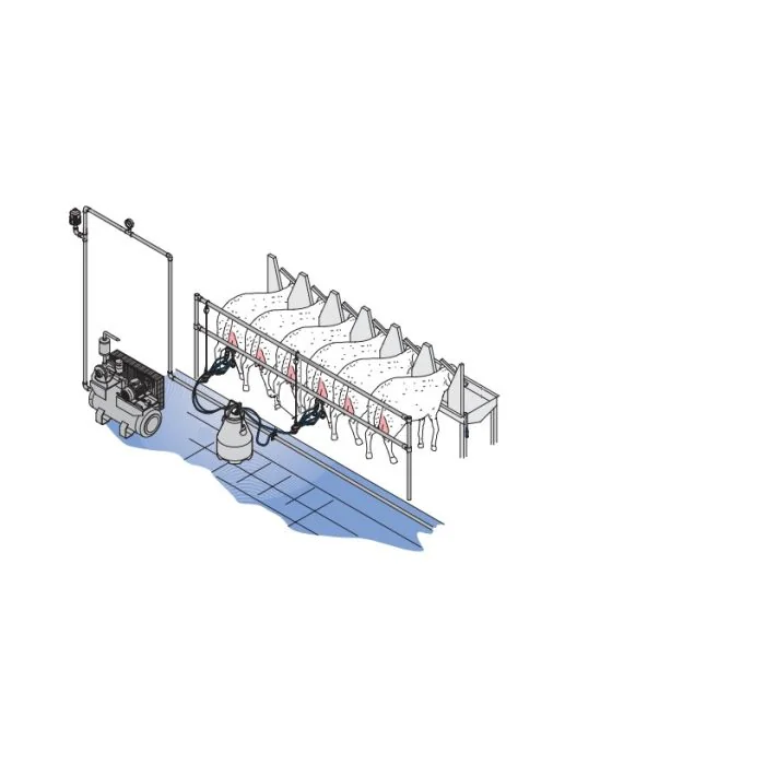 Sigurnosne brave se zabravljuju automatski za svako grlo posebno za vreme muže i ručno se otpušta ceo red pomoću ručice na kraju konstrukcije. Konstrukcija omogućava brzu i nežnu mužu uz odgovarajuću muznu opremu.