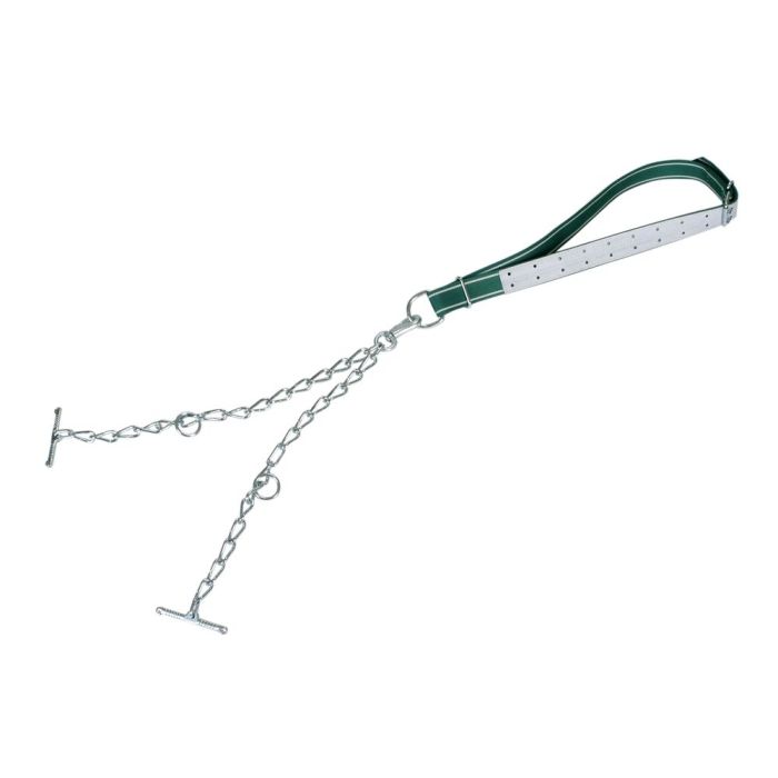 Ogrlica za goveda belo-zelena sa dva lanca za vezivanje
